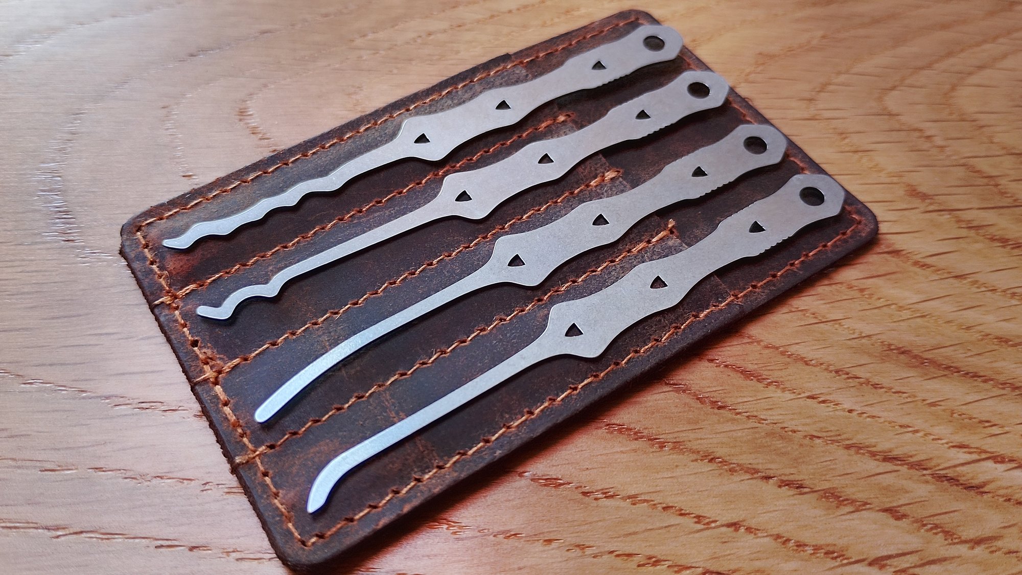 All the versatility of a full size set with the stowability of a credit card size set! This fits perfectly in a wallet and leaves room for cash for those essentials.